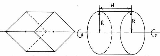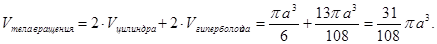 Тело, полученное при данном типе вращения, состоит из двух равных цилиндров и двух гиперболоидов вращения с общим основанием.