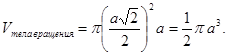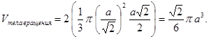 При вращении октаэдра относительно оси, проходящей через противоположные вершины, получается тело вращения, объем которого равен ![]()