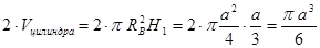 Фигурой вращения является цилиндр, основанием которого служит окружность, описанная около квадрата (грани куба). Высота цилиндра (H) равна ребру куба и равна а.