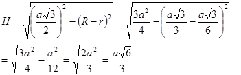 H1 находим из прямоугольного треугольника, в котором гипотенуза равна а, а один из катетов равен R.