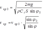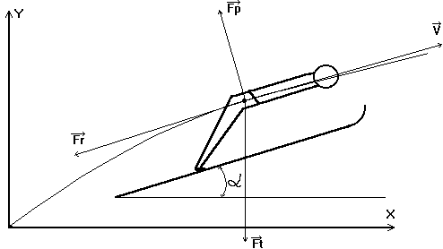- конца участка приземления - равны нулю. Если нет бокового ветра и других возмущений, центр масс лыжника описывает кривую в вертикальной плоскости, то есть задачу полета можно рассматривать как двухмерную.