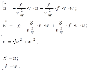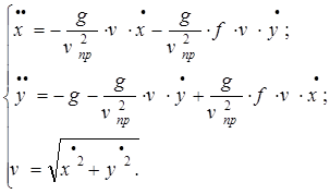 Спроецировав (1) на оси координат, путем несложных преобразований приходим к дифференциальным уравнениям движения:
