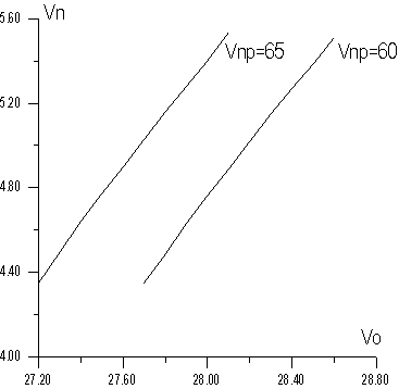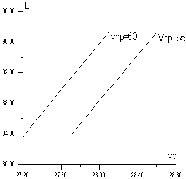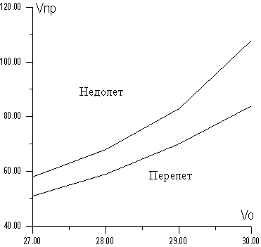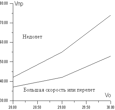 Рис.14. Допустимая зона изменения предельной и начальной скоростей при фиксированном угле наклона лыж к горизонту