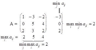 -м столбце в матрице А. Отыскание седловой точки матрицы А происходит следующим образом: в матрице А последовательно в каждой строке