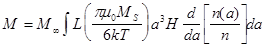Представление магнитной жидкости в виде однородного дипольного газа, в котором элементарным носителем магнитного момента является дисперсная частица позволяет применить для описания намагничивания такой системы закон Ланжевена [10], выведенный им для ансамбля молекул парамагнитного газа. В этом случае выражение для намагниченности магнитной жидкости М в поле Н может быть представлено в виде: