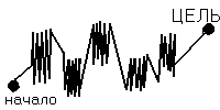 Так как таких промежуточных шагов может быть много, путь к решению может занять очень много времени. Теперь рассмотрим решение задачи математиком. Движение его к цели по сути тоже заключается в серии промежуточных шагов, но он может применять теоремы, формулы, факты установленные и проверенные другими математиками, которые заключают в себе сотни, тысячи элементарных логических шагов, которые уже нет необходимости проделывать. Его путь можно изобразить такой диаграммой: