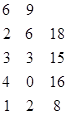 1. (2,0,14,6) 2.(2,4,18,8) 3. (4,0,6,12) 4.(6,2,14,4)