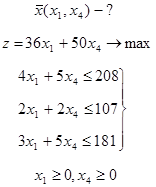Если по оптимальной производственной программе какие-то два вида продукции не должны выпускаться, то в таблице исходных данных вычеркнуть соответствующие два столбца, составить математическую модель задачи оптимизации производственной программы с двумя оставшимися переменными, сохранив прежнюю нумерацию переменных и решить графически.