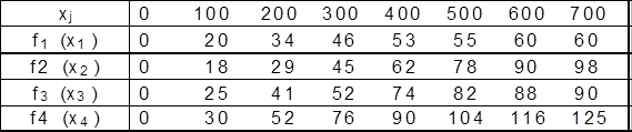 4. Методом динамического программирования решить задачу распределения капитальных вложений между четырьмя предприятиями производственного объединения, располагающего суммой в 700 тыс. руб., по исходным данным, приведенным в приложении 3 (выделяемые суммы кратны 100 тыс.).
