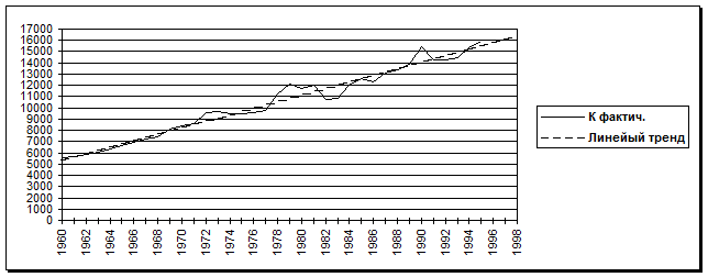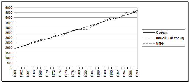 Замечание. Полученные прогнозы основаны на данных 1960 – 1995 г.г. К настоящему времени уже известны фактические данные за 1996 – 1998 г.г., поэтому есть возможность сравнить прогнозируемые значения с фактическими.