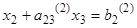Виключимо х1 з другого і третього рівнянь системи (1). Для цього віднімемо з них рівняння (2), помножене на коефіцієнт при х1 (відповідно а21 і а31 ).
