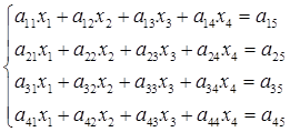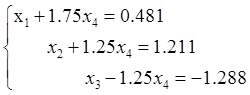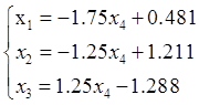 Змінні x1 , x2 , x3 залишемо в лівій частині рівняння, а х4 перенесимо вправо. Остаточний вигляд системи буде такий: