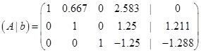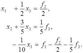 Для цього знайдене значення х3 підставляють в друге рівняння системи (5) і знаходять х2. Потім х2 і х3 підставляють в перше рівняння і знаходять х1.