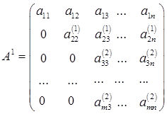 У разі сумісної системи після перетворень по методу Гауса, складових прямий хід методу, система т лінійних рівнянь з п невідомими буде приведена або до трикутного або до ступінчастого вигляду.