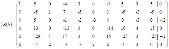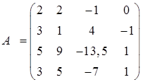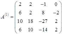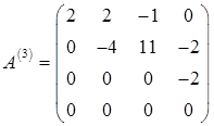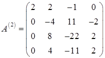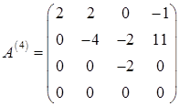 . До четвертого рядка додаємо другий. Отримаємо нульовий рядок. Перетворена матриця має вигляд: