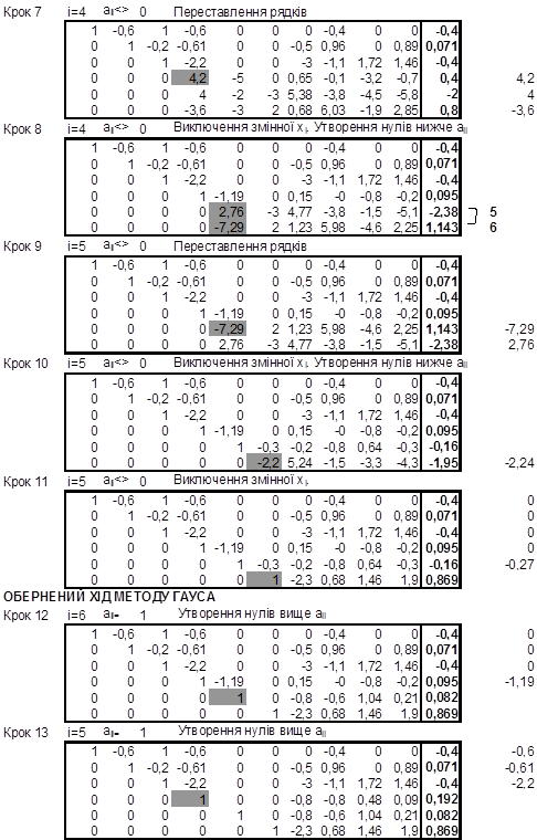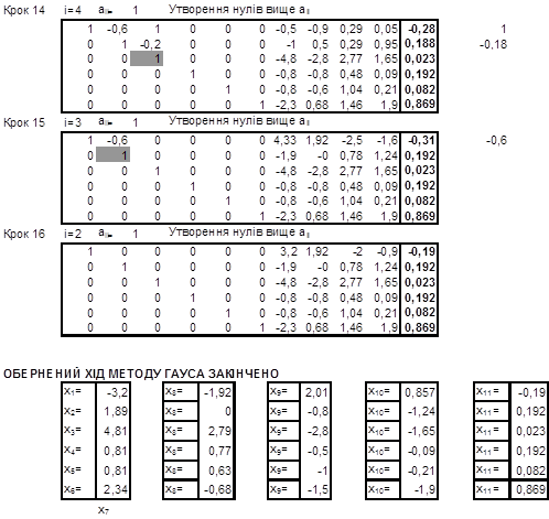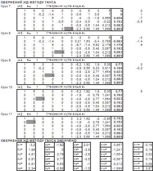 Аналогічно продовжуємо до отримання розв’язку СЛАР. В результаті отримаємо наступну табличку: