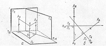 ), то відклавши відстань, позначену двома рисками, одержимо проекцію прямої у вигляді точки