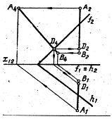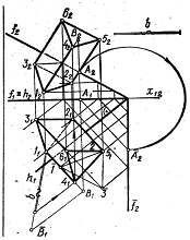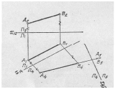 паралельна горизонтальній проекції прямої). Відклавши від нової осі відповідні відстані від фронтальних проекцій точок до старої осі, одержують натуральну величину відрізка