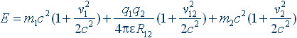 где: m1 и m2 – массы заряженных частиц, q1 и q2 – величины зарядов, v1 и v2 скорости первого и второго зарядов, R12 и v12 –относительное расстояние и относительная скорость зарядов.