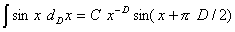 Видим, что экспонента после фрактального интегрирования приобрела нелинейный множитель. Постоянные интегрирования здесь не выписываем, если судить по дробному интегродифференциальному исчислению [11], вопрос о постоянной интегрирования неоднозначен. Интегрирование от тригонометрических функций продемонстрируем на синусе. Представляя функцию синус в экспоненциальной форме и применяя результат (12), в итоге получаем