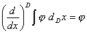 Обратим внимание на то, что значок D, указывающий на фрактальную размерность, пишется снизу дифференциала d. Поскольку длина фрактальной линии есть C×d 1- D , то приходим к следующему, первому правилу фрактального исчисления - правилу интегрирования линейной функции: