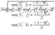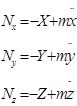 Выразим направляющие косинусы оси v через координаты x, y, zточки N и длину отрезка ON: