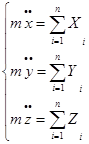 2)При поступательном движении тела все его точки движутся также как и и его центр масс. Поэтому дифференциальные уравнения движения центра масс тела являются дифференциальными уравнениями поступательного движения твёрдого тела: