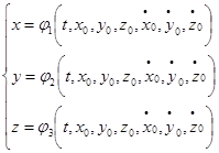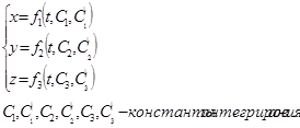 Поскольку действие силы известны, то => известны и правые части этих ур-й. Интегрирование их дважды по времени приводит их к 3-м ур-м содержащим 6 произвольным постонным: