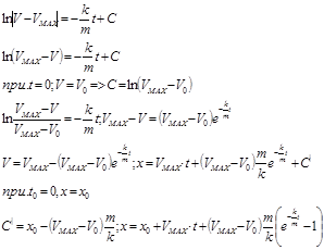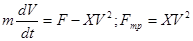 При движении тел в газах в частности в воздухе при скорости до 300 м\с сила сопротивления пропорциональна квадрату скорости, т.е. где x- const![]()