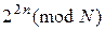A’ = 22n (mod N) = 22 ´ 5 (mod N) = 1024(mod 41) = 40 = 0´20 + 0´21 + 0´22 + 1´23 + 0´24 + 1´25