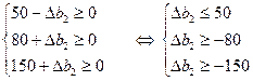 Це означає, що коли запас ресурсу 2 збільшиться на 150 од. або зменшиться на 80 од., то оптимальною двоїстою оцінкою ресурсу 2 залишиться y2 = 7. Отже, запас ресурсу 2 може змінюватися у межах