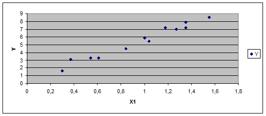 Відповідно до обчислених коефіцієнтів кореляції, показник Y має тісніший зв’язок із змінною Х3 порівняно із змінною Х2 . Тому відкинемо фактор Х2 . Будемо розглядати модель Y=Y(X1 , X3 ).