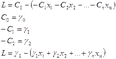 В любой задаче ОЗЛП существует так же линейная функция L, которая в общем случае выглядит следующим образом: