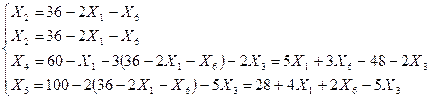 В данной системе 3 – уравнения с 3 – неизвестными, принимают за основные X4 , X5, X6 – переменных.