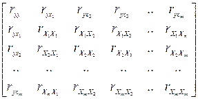 б) парні коефіцієнти кореляції між окремими Xk і Xj rXkXj (їх для моделі існує m*m);