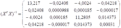 На діагоналі коваріаційної матриці отримуємо дисперсії коефіцієнтів регресії bj :