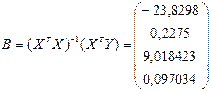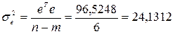 Де В – матриця оцінок параметрів моделі. Його стандартна похибка складає