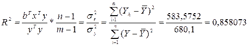 Його значення показує, що на 85,8073% варіацію змінної Yможна пояснити варіацією пояснювальних змінних Х.