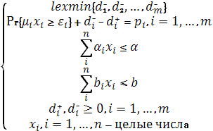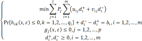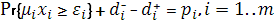 – назначенный уровень i-ой цели, l – число приоритетов и m – число целевых ограничений.