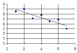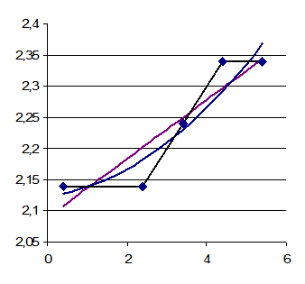 Т.о. линейная зависимость у = а0 + а1 х имеет вид: у = 2,08865 + 0,0473х.