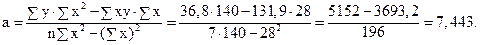 – квадратичная зависимость реализована уравнением: у = 2,1243 + 0,0073·х + 0,007·х2 .