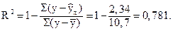 и остаточная сумма квадратов отклонений, которые записаны в нижних строках таблицы.