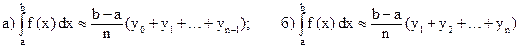 а) трапеций (n = 10); б) Симпсона (n = 10); в) Гаусса (n = 5).