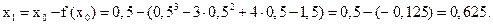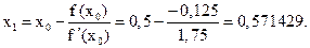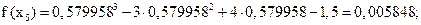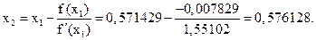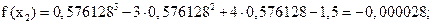 В пределах заданной точности f(x2 ) оказался равен нулю, т.е. требуемая точность достигнута за 4 шага. Значение корня с заданной точностью: