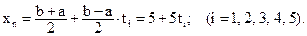Для n = 5, коэффициенты ti , представляющие нули полинома Лежандра и коэффициента Аi (эти значения табулированы в справочных таблицах) составляют: