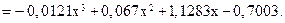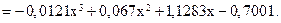 у = 2,12433 + 0,00729·х + 0,006996·х2 .