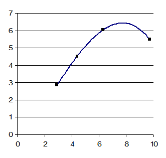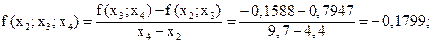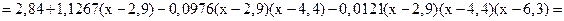 Полученное уравнение позволяет найти приближённые значения функции в любых промежуточных точках от х1 = 2,9 до х4 = 9,7.