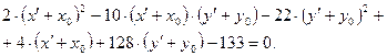 Мы установили, что данная кривая — центральная, поэтому используем методику приведения к каноническому виду для уравнения центральной кривой. Совершим параллельный перенос начала координат в точку