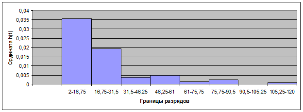 Далее произвел группирование интервалов по разрядам. В процессе группирования установил, сколько интервалов mi попало в разряд ti – ti+1 . Последующие расчеты основных параметров статистического ряда выполнил в форме табл. 3, в которую свел все промежуточные результаты вычислений.
