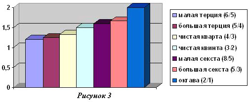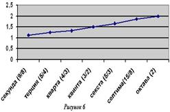 3. Идея совершенства окружающего мира владела умами ученых и в последующие эпохи. В первой половине XVII в. И.Кеплер установил семь основных гармонических интервалов: октаву - 2/1, большую сексту - 5/3, малую сексту - 8/5, чистую квинту - 3/2, чистую кварту - 4/3, большую терцию - 5/4 и малую терцию - 6/5.